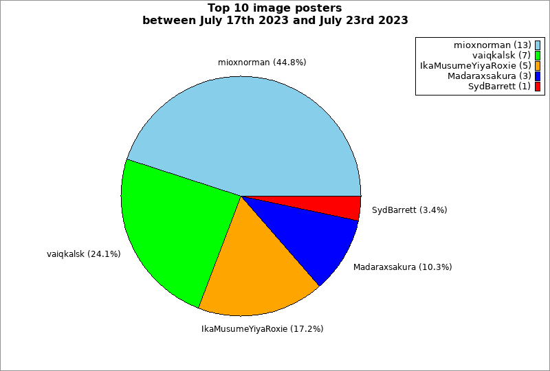 | Top 10 image posters between July 17th 2023 and July 23rd 2023 | ||