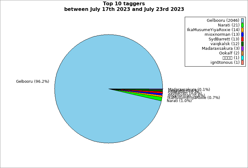 | Top 10 taggers between July 17th 2023 and July 23rd 2023 | ||