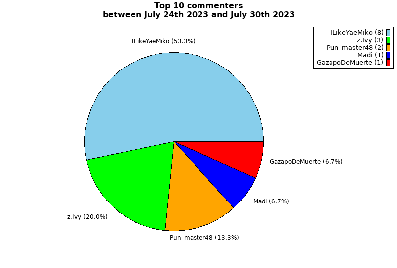 | Top 10 commenters between July 24th 2023 and July 30th 2023 | ||