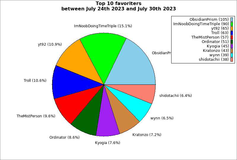 | Top 10 favoriters between July 24th 2023 and July 30th 2023 | ||