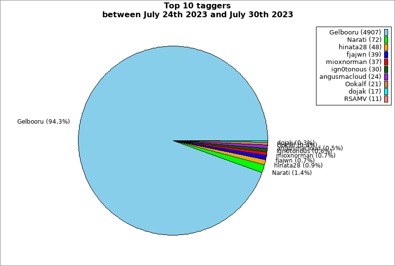 | Top 10 taggers between July 24th 2023 and July 30th 2023 | ||