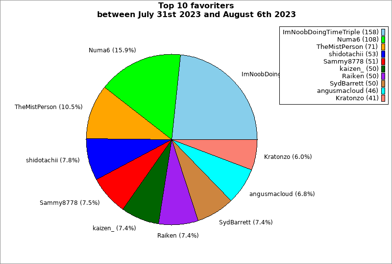 | Top 10 favoriters between July 31st 2023 and August 6th 2023 | ||