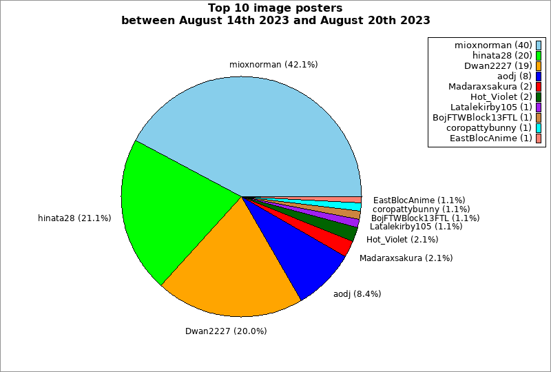 | Top 10 image posters between August 14th 2023 and August 20th 2023 | ||