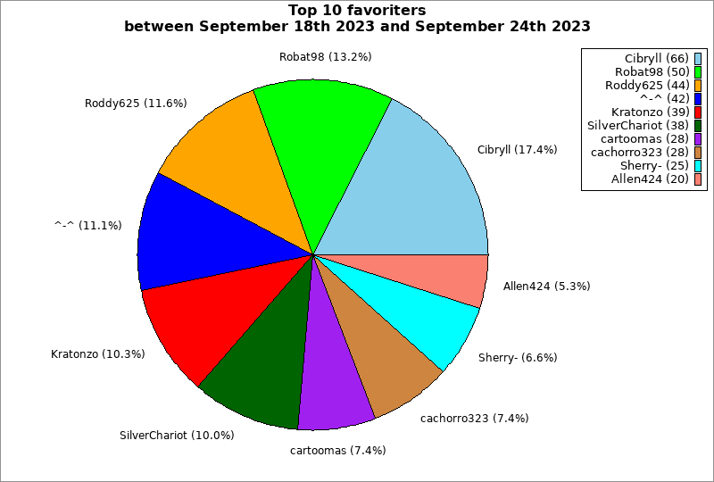 | Top 10 favoriters between September 18th 2023 and September 24th 2023 | ||