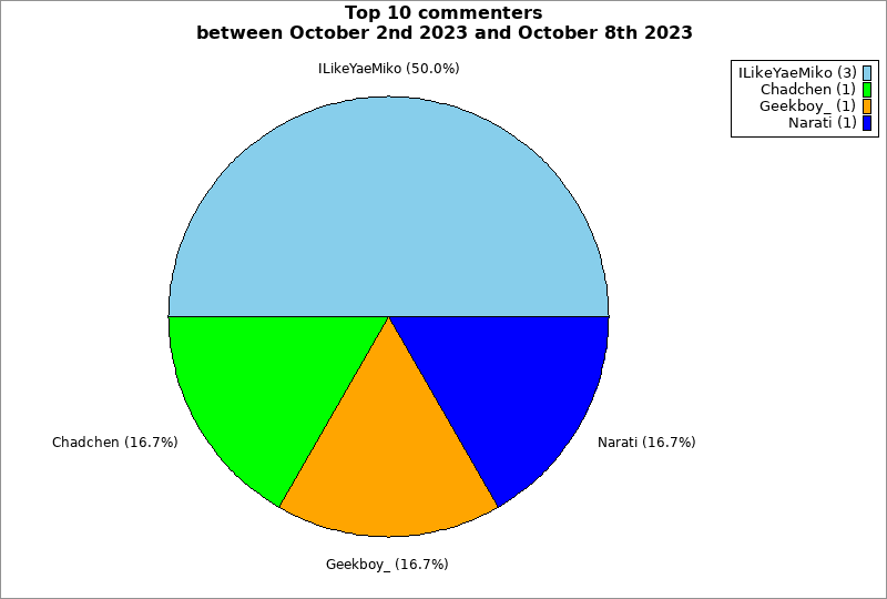 | Top 10 commenters between October 2nd 2023 and October 8th 2023 | ||