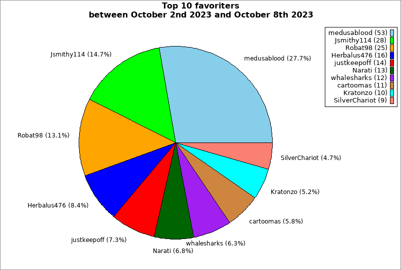 | Top 10 favoriters between October 2nd 2023 and October 8th 2023 | ||