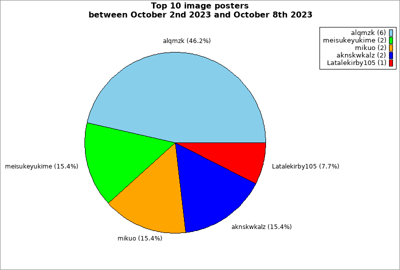 | Top 10 image posters between October 2nd 2023 and October 8th 2023 | ||