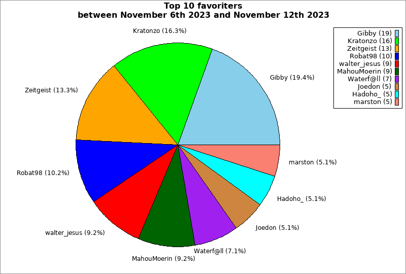| Top 10 favoriters between November 6th 2023 and November 12th 2023 | ||