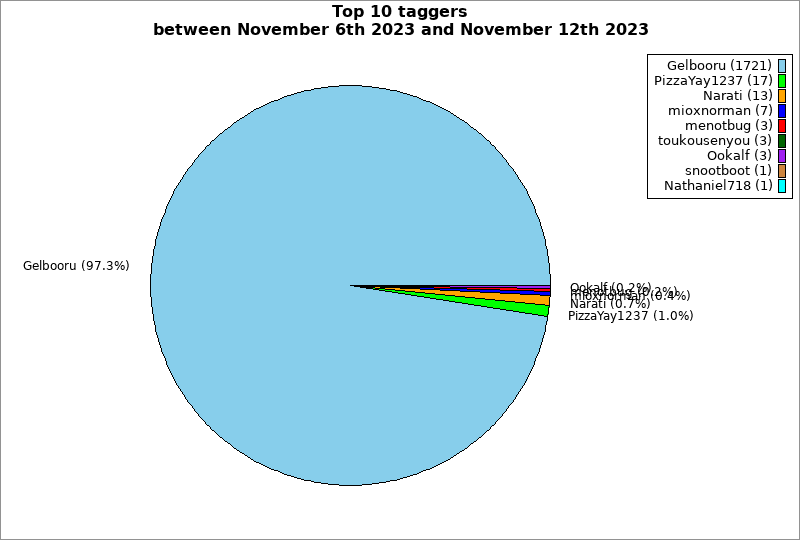 | Top 10 taggers between November 6th 2023 and November 12th 2023 | ||