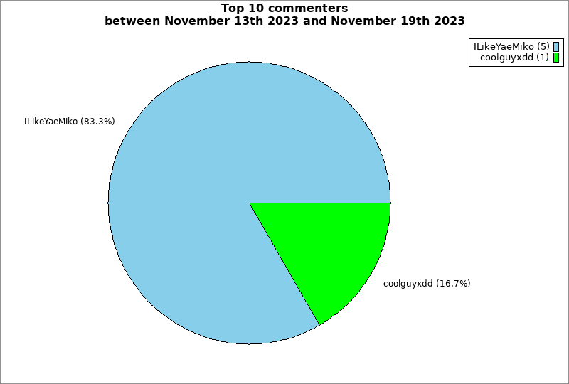 | Top 10 commenters between November 13th 2023 and November 19th 2023 | ||