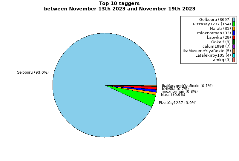 | Top 10 taggers between November 13th 2023 and November 19th 2023 | ||