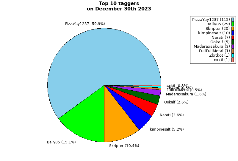 | Top 10 taggers on December 30th 2023 | ||