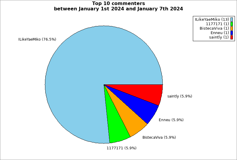 | Top 10 commenters between January 1st 2024 and January 7th 2024 | ||