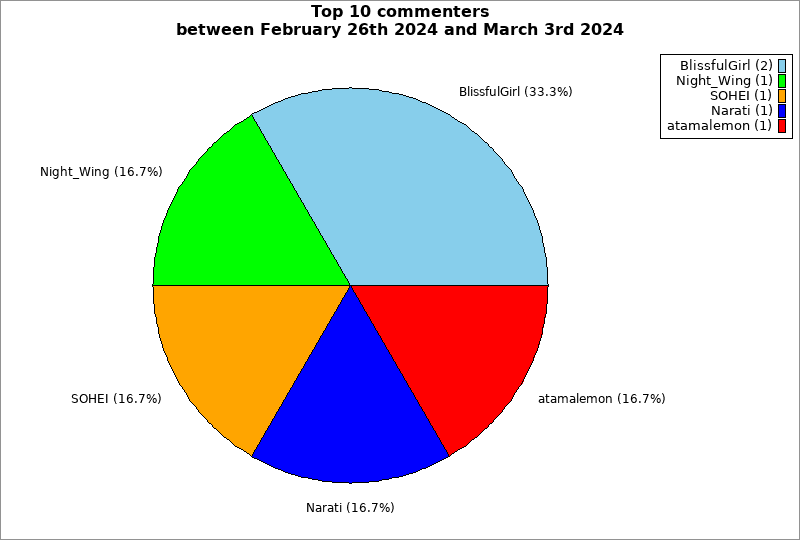 | Top 10 commenters between February 26th 2024 and March 3rd 2024 | ||