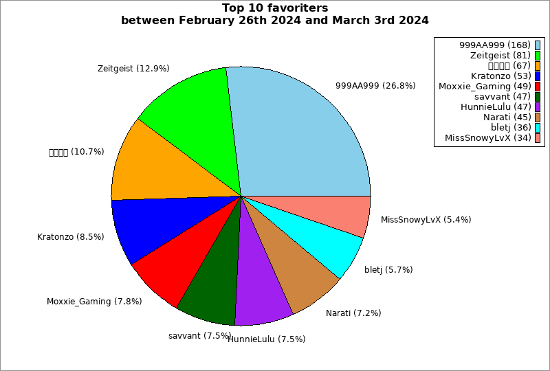 | Top 10 favoriters between February 26th 2024 and March 3rd 2024 | ||