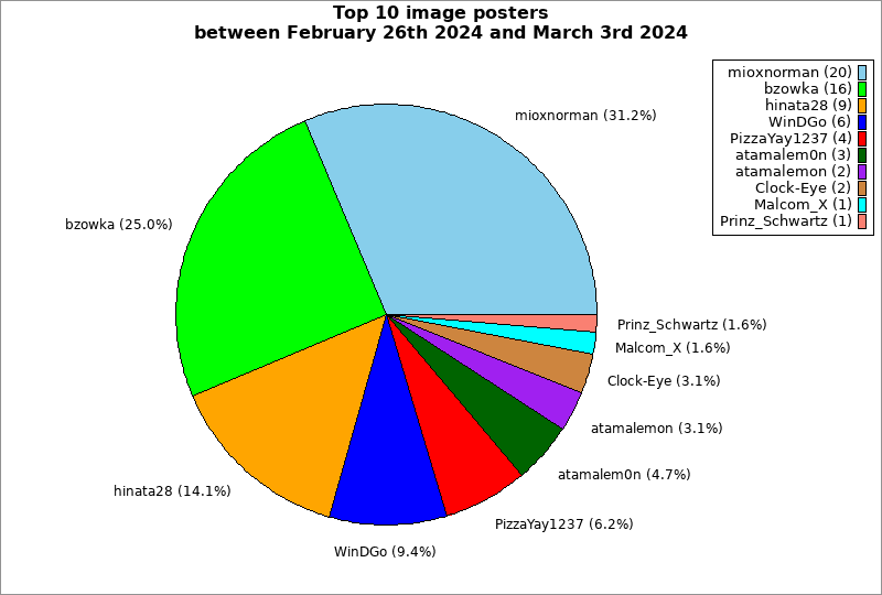 | Top 10 image posters between February 26th 2024 and March 3rd 2024 | ||