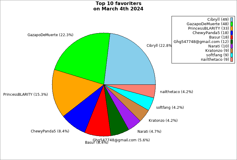 | Top 10 favoriters on March 4th 2024 | ||