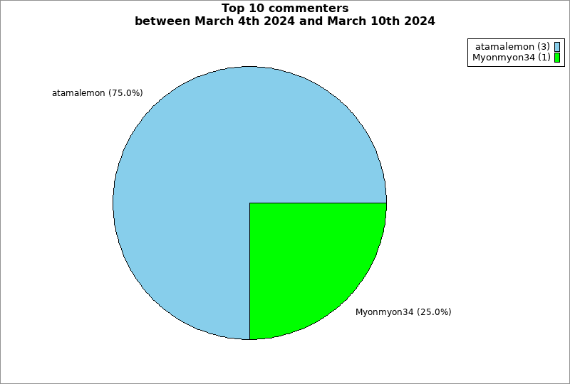 | Top 10 commenters between March 4th 2024 and March 10th 2024 | ||