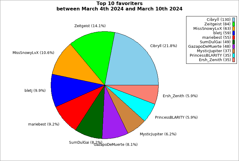 | Top 10 favoriters between March 4th 2024 and March 10th 2024 | ||