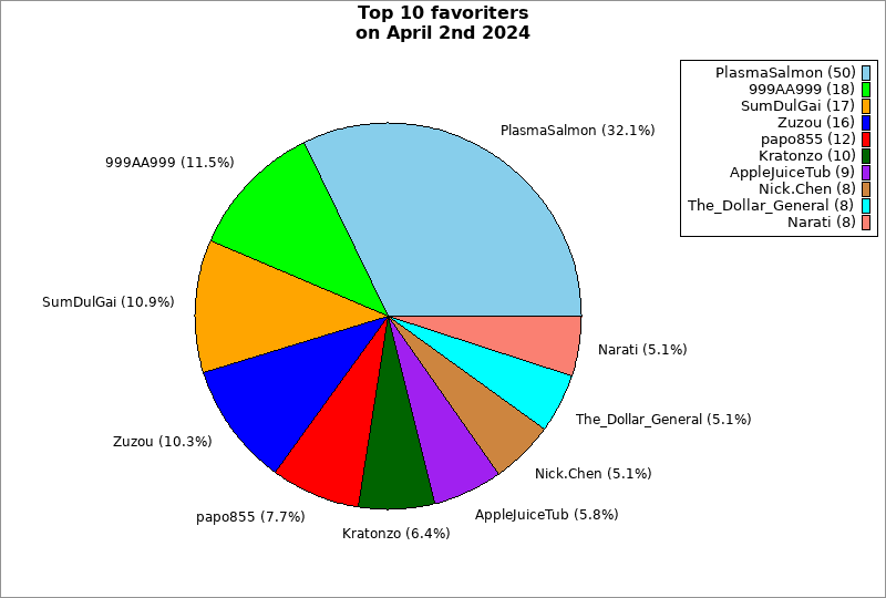 | Top 10 favoriters on April 2nd 2024 | ||
