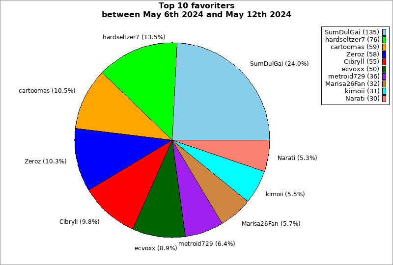 | Top 10 favoriters between May 6th 2024 and May 12th 2024 | ||