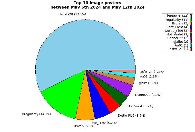 | Top 10 image posters between May 6th 2024 and May 12th 2024 | ||