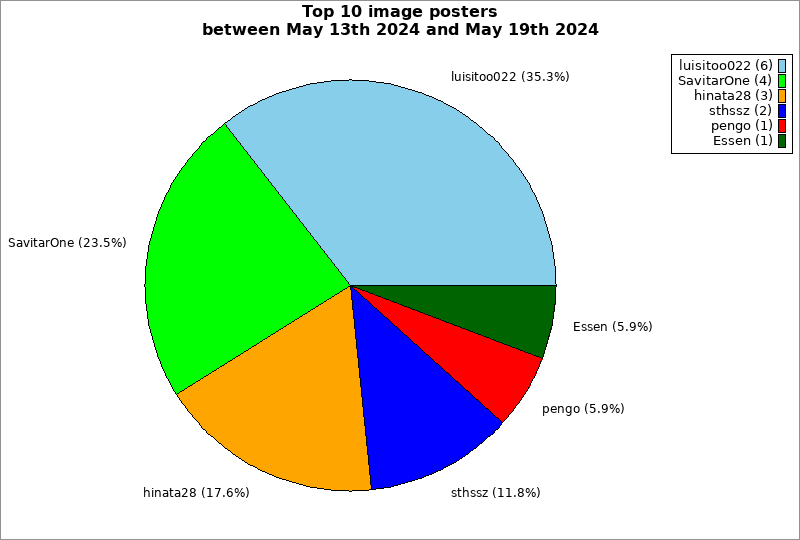 | Top 10 image posters between May 13th 2024 and May 19th 2024 | ||