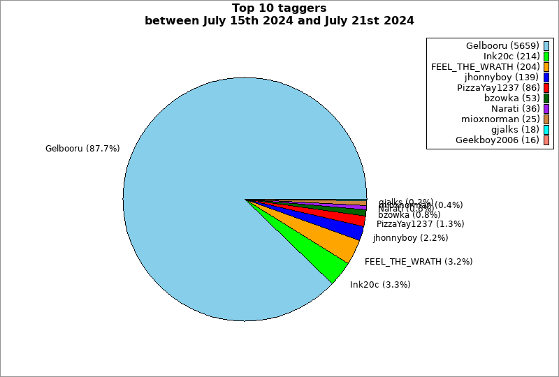 | Top 10 taggers between July 15th 2024 and July 21st 2024 | ||