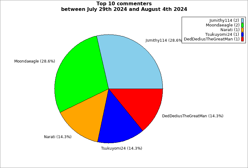 | Top 10 commenters between July 29th 2024 and August 4th 2024 | ||