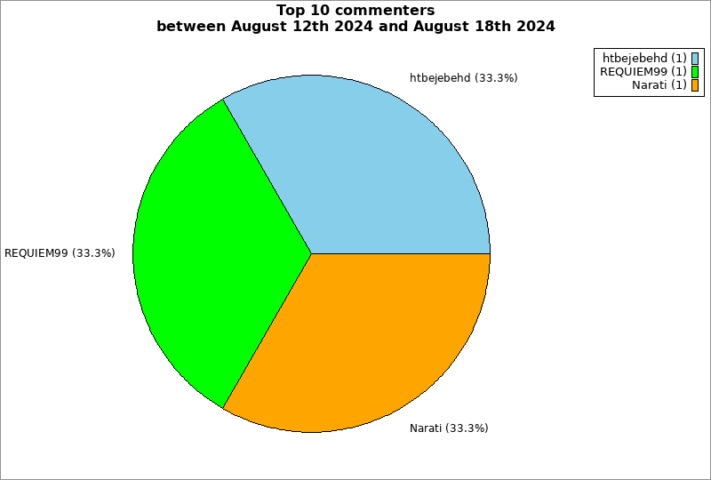 | Top 10 commenters between August 12th 2024 and August 18th 2024 | ||