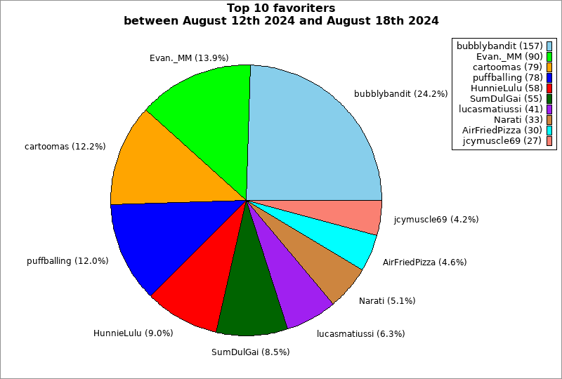 | Top 10 favoriters between August 12th 2024 and August 18th 2024 | ||