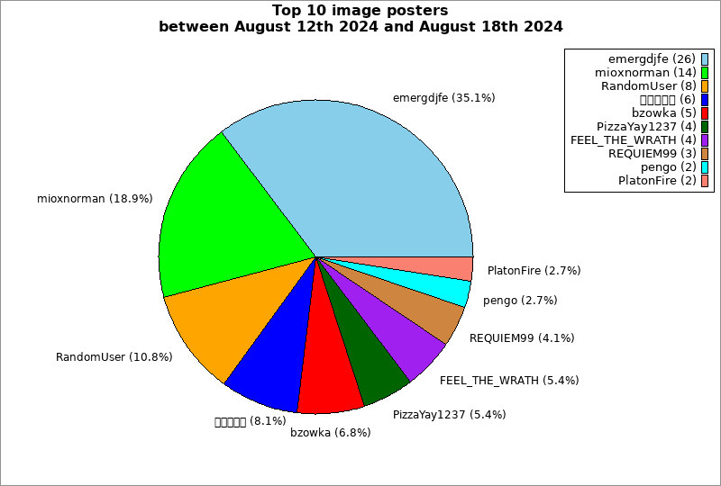 | Top 10 image posters between August 12th 2024 and August 18th 2024 | ||