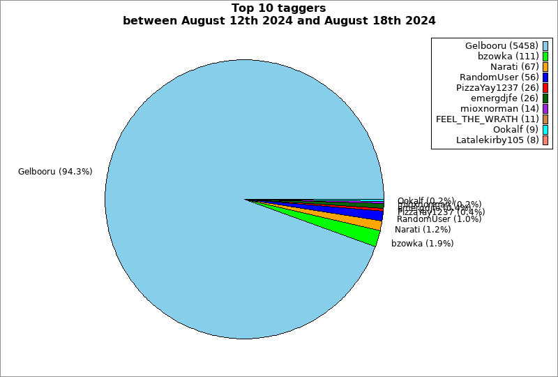 | Top 10 taggers between August 12th 2024 and August 18th 2024 | ||