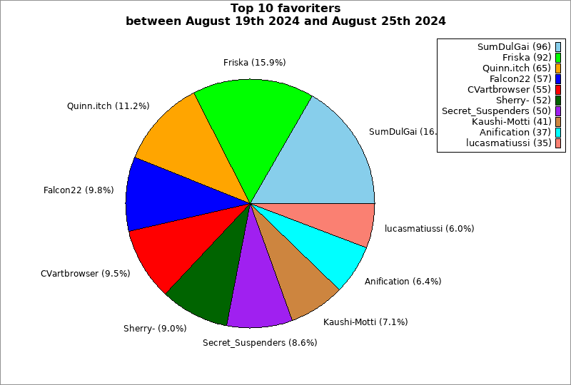 | Top 10 favoriters between August 19th 2024 and August 25th 2024 | ||