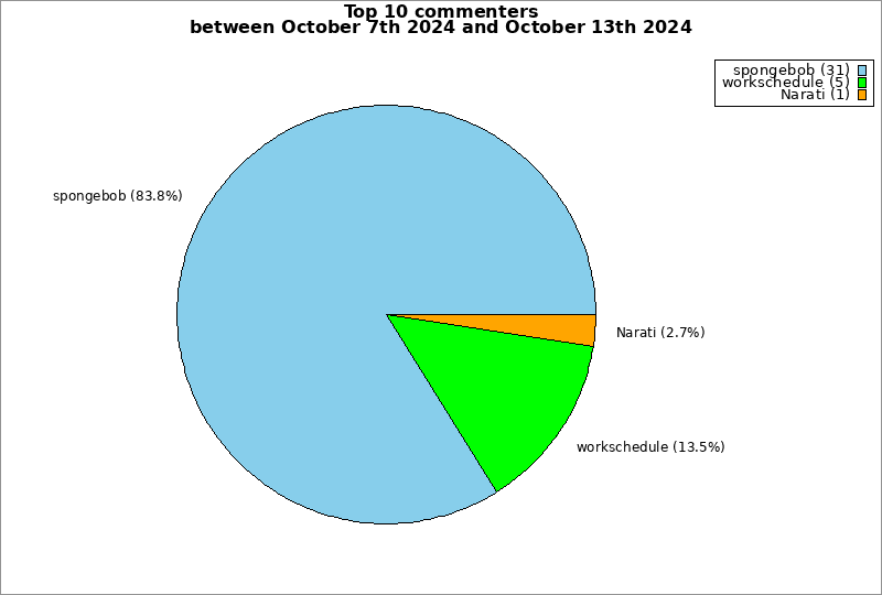 | Top 10 commenters between October 7th 2024 and October 13th 2024 | ||