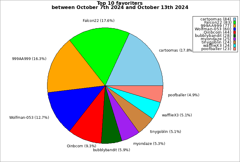 | Top 10 favoriters between October 7th 2024 and October 13th 2024 | ||