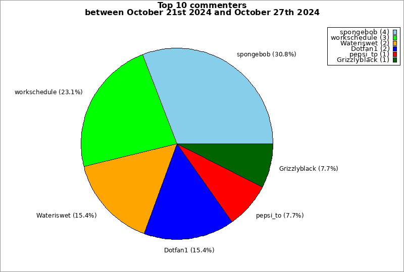 | Top 10 commenters between October 21st 2024 and October 27th 2024 | ||