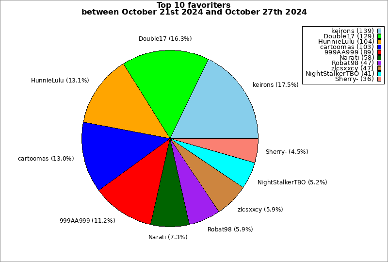 | Top 10 favoriters between October 21st 2024 and October 27th 2024 | ||