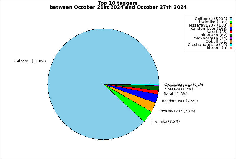 | Top 10 taggers between October 21st 2024 and October 27th 2024 | ||