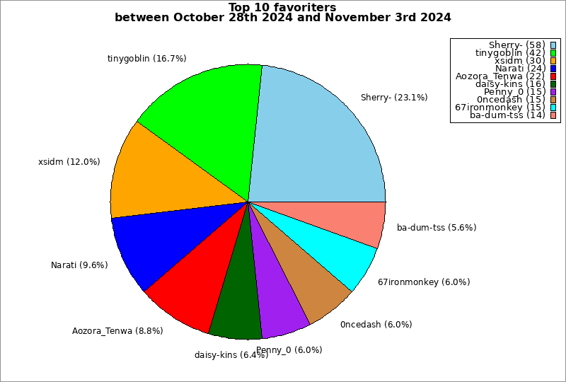 | Top 10 favoriters between October 28th 2024 and November 3rd 2024 | ||