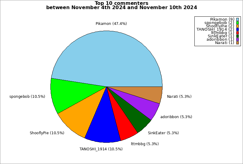 | Top 10 commenters between November 4th 2024 and November 10th 2024 | ||