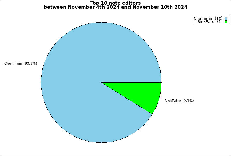| Top 10 note editors between November 4th 2024 and November 10th 2024 | ||