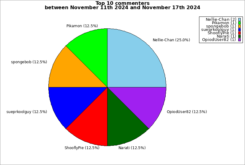 | Top 10 commenters between November 11th 2024 and November 17th 2024 | ||