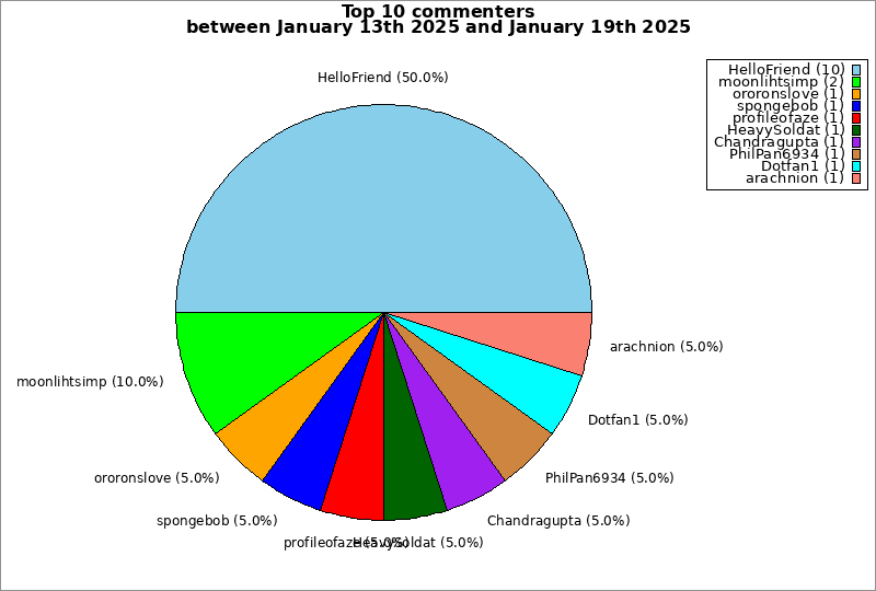 | Top 10 commenters between January 13th 2025 and January 19th 2025 | ||