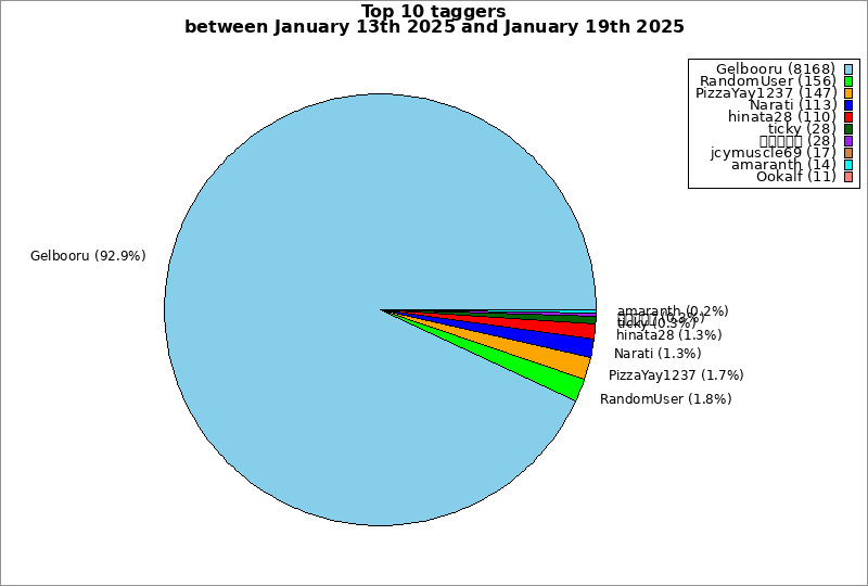 | Top 10 taggers between January 13th 2025 and January 19th 2025 | ||