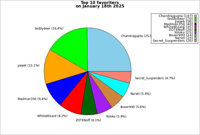 | Top 10 favoriters on January 18th 2025 | ||
