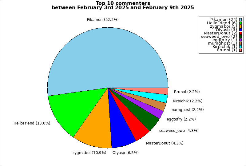 | Top 10 commenters between February 3rd 2025 and February 9th 2025 | ||