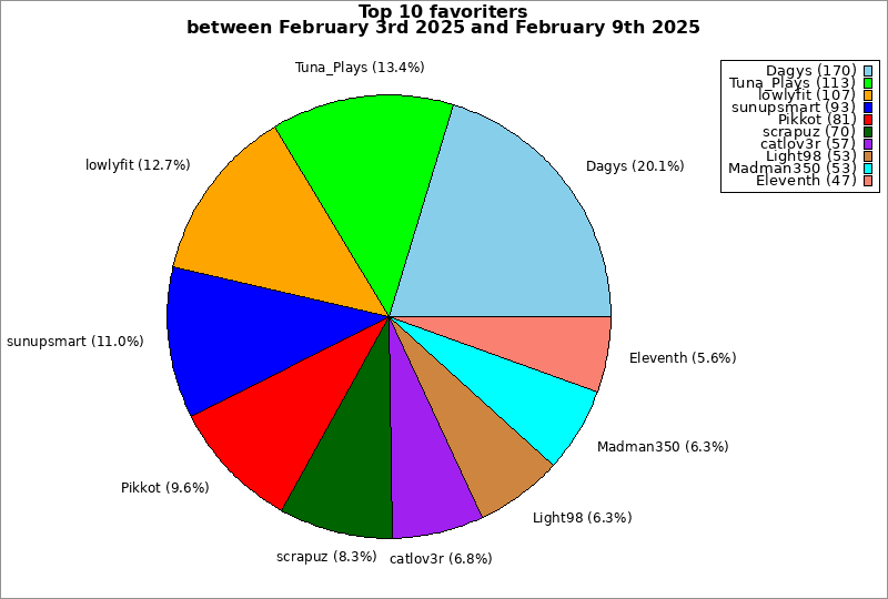 | Top 10 favoriters between February 3rd 2025 and February 9th 2025 | ||