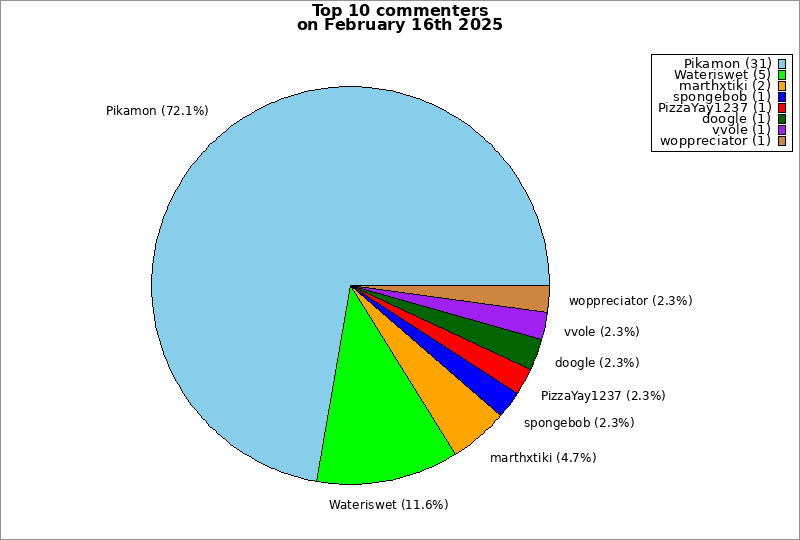 | Top 10 commenters on February 16th 2025 | ||