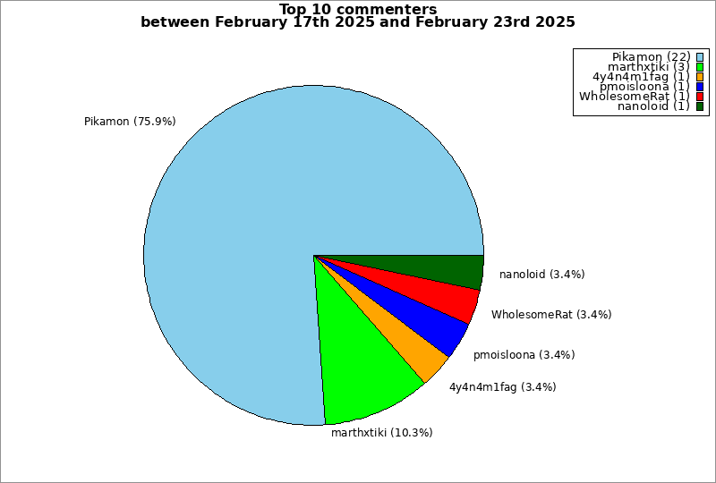 | Top 10 commenters between February 17th 2025 and February 23rd 2025 | ||